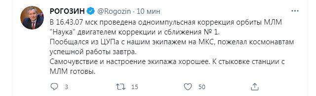 «Неспокойные дни в ЦУП увенчались в минувшее воскресенье гарантией того, что модуль сможет достичь станции, опираясь на собственные энергетические и навигационные системы», — рассказали в ЕКА, пояснив, что как и другие российские модули и космические корабли, «Наука» может автоматически сближаться и стыковаться с Международной космической станцией, используя собственные двигатели.