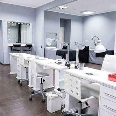 - Поиск помещения под бизнес. Для комфортной работы мастеров и обслуживания клиентов подойдет помещение площадью 50-70 кв. м. Этого хватит для расстановки 5-6 столов. Основные требования к помещению: наличие окон, желательно не полуподвальное, помещение должно быть светлым. Как правило услуги по маникюру сопровождают и услуги педикюра, исходя из этого необходимо рассчитывать квадратуру и количество рабочих мест, а также ведение записей клиента – во избежание нескольких записей на одно кресло. Во время ремонта следует проработать тему зонирования салона. Рекомендуется предусмотреть помещение для персонала (для отдыха, приема пищи), а также зону для обработки инструмента (стерилизации и дезинфекции). Чем эргономичнее будет спланировано пространство с соблюдением всех требований – тем проще будет строить рабочий процесс. При планировании дизайна студии важно обозначить ресепшен. Стойка администратора должна находиться напротив входа.
