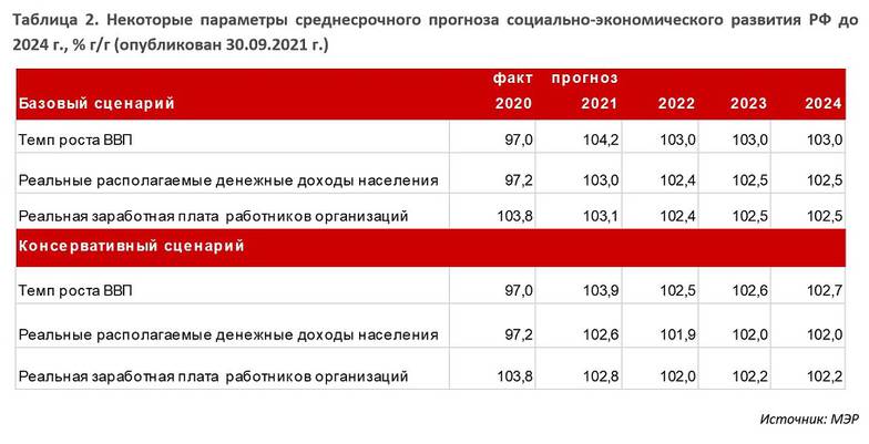 Вместе с тем, достижение даже таких скромных темпов роста реальных располагаемых доходов некоторыми экспертами ставится под сомнение. Так, по оценке специалистов РЭУ им. Плеханова1, для обеспечения устойчивого роста реальных доходов на уровне 2-2,5% в год темпы роста ВВП должны быть не менее 4-5% в год. Однако прогноз МЭР предполагает рост экономики на уровне не более 3% в 2022-2024 годах.