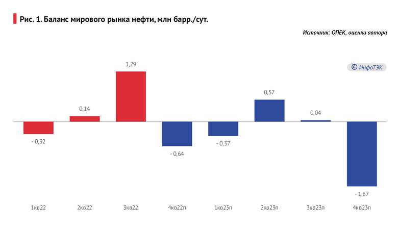Действительно, в начале 2023 года на рынке мог бы сложиться профицит из-за спада потребления в силу сезонного фактора и замедления роста мировой экономики. Сезонная потеря спроса в I—II кварталах 2023 года оценивается в 0,4—1,4 млн барр/сут.