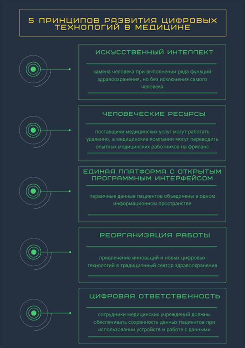 Данное направление развивается благодаря активному внедрению информационных технологий в процессы оптимизации и создания инноваций, а новые решения в данном направлении с каждым годом приобретают все большее значение в общей системе здравоохранения. За последнее десятилетие цифровая медицина стала самым главным инновационным направлением сферы здравоохранения, которое имеет большой потенциал на рубеже ближайших 20-30 лет.