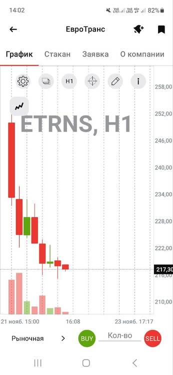 Акции оператора заправок «Евротранс» падают второй день подряд после IPO и начала торгов