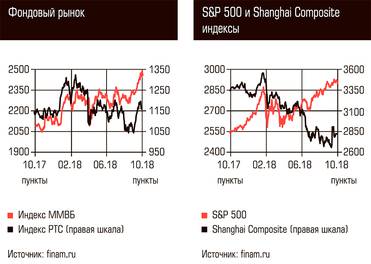 В Китае же подобной картины не наблюдается. Shanghai Composite смог вырасти на 0,85%, до 2821,35 пункта. В торговой войне Китай, крупнейший внешний кредитор американской экономики, собирается использовать в качестве оружия имеющиеся у него долговые бумаги США. За первое полугодие 2018 года он уже сократил вложения в госдолг США на 7,7 млрд долларов, и в октябре руководство КНР планирует сбросить американских облигаций еще на 3 млрд. Подобную меру можно воспринимать скорее как предупредительный выстрел: вложения Китая в госдолг США превышают триллион долларов; однако таким образом Пекин дает понять, что настроен решительно, и это придает оптимизма китайскому рынку.