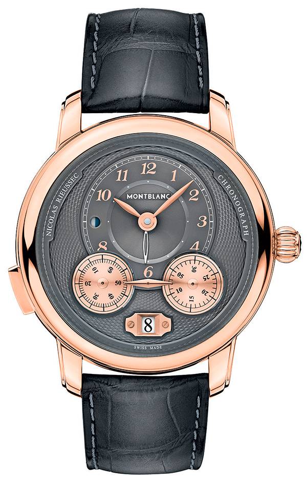 В одной из них использовано сочетание красного золота и антрацитово-черных деталей, другая выполнена в корпусе из нержавеющей стали с антрацитовым циферблатом. Часы — дань уважения французскому часовщику Николя Риуссеку, который изобрел первый чернильный хронограф, запатентованный в 1821 году, и внес заметный вклад в историю часового искусства. Хронографы имеют два узнаваемых вращающихся горизонтально выровненных диска на часовом циферблате, один из которых предназначен для 60-секундного счетчика, а другой — для 30-минутного. Диски вращаются под двойным указателем, одна сторона которого отмечает прошедшие секунды, а другая — минуты. Часы оснащены легендарным мануфактурным калибром MB R200 с однокнопочным хронографом, автоматическим подзаводом и колонным колесом. Все эти технологические решения можно увидеть через прозрачное сапфировое стекло в задней крышке корпуса. Механизм обеспечивает трехдневный запас хода. Модели демонстрируют исключительную точность и обладают водонепроницаемостью три атмосферы.