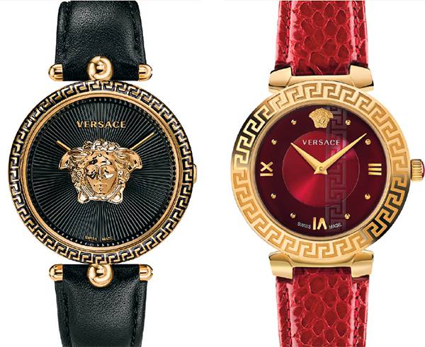 Одно из центральных украшений циферблатов часов из коллекций Versace — логотип дома моды: золотая голова древнегреческой Медузы Горгоны.