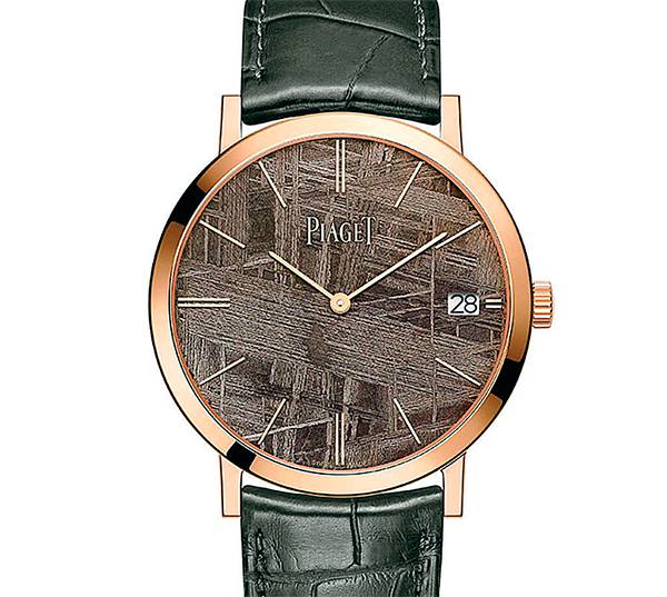 Одна из моделей новинки этого года — коллекции Altiplano — это невероятно тонкая работа часовщиков, исключительная закрепка камней и редкая отделка с использованием фрагментов метеорита. Модель Altiplano выполнена в 40-миллиметровом корпусе из розового золота с циферблатом из метеорита серого цвета с лаконичной индикацией времени в часах и минутах и индикатором даты в положении «3 часа».