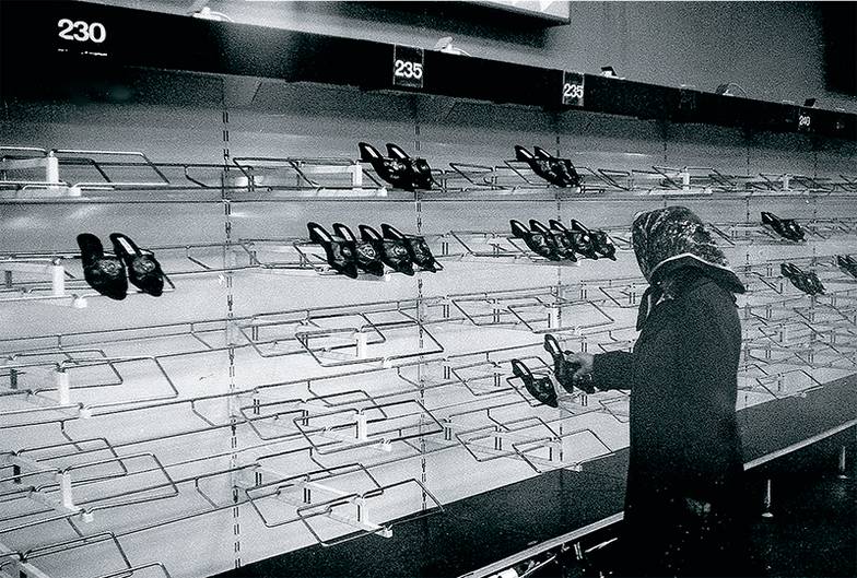 Т. С.: Вы сейчас отметили, что ярко дефицит проявил себя именно в позднюю эпоху СССР. И это действительно любопытно, потому что сохранилось много воспоминаний людей, в которых рассказывается, что в шестидесятые годы какой-то более или менее приемлемый выбор в магазинах все-таки был, а вот уже в семидесятые с прилавком потихоньку все начинает пропадать. Сначала премиальные продукты, затем сужается выбор обычных товаров, а потом начались совсем странные явления, когда могли неожиданно пропасть обычные зимние шапки. С чем это было связано? Какая структурная проблема стояла за этой потребительской аномалией?