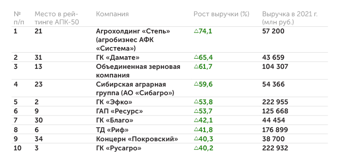 Агропромышленный комплекс России, как и вся экономика страны, пережил 2021 год прекрасно. 50 крупнейших компаний отрасли увеличили выручку на четверть — и это при уровне инфляции 8,39% и росте ВВП на 4,7%. Крупный агропромышленный бизнес развивался, а значит, увеличивал свою долю в экономике.