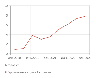 Пока в США уровень инфляции перешел к замедлению на фоне жесткой монетарной политики ФРС, в Австралии индекс потребительских цен разогнался в четвертом квартале 2022 года до 7,80%.