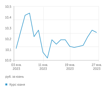 Дополнительную поддержку юаню оказывает его удорожание на глобальных рынках: инвесторы заинтересовались инвестициями на фондовом рынке Китая после новости об отмене жестких коронавирусных ограничений. При этом российская валюта слабела в конце прошлой недели из-за завершения налогового периода января, когда компании-экспортеры оказывали поддержку рублю продажами валютной выручки на открытом рынке.