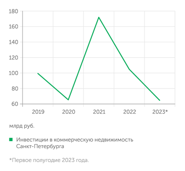 По данным консалтинговой компании NF Group, объем инвестиций в недвижимость Санкт-Петербурга за шесть месяцев 2023 года вырос на 33% в годовом выражении, превысив 64,6 млрд рублей. Лидерами по объему вложений стали инвестиционные компании и частные инвесторы, их доля составила 47%. Из объектов чаще всего покупали торговые центры (33%), отели (26%) и офисы (24%).