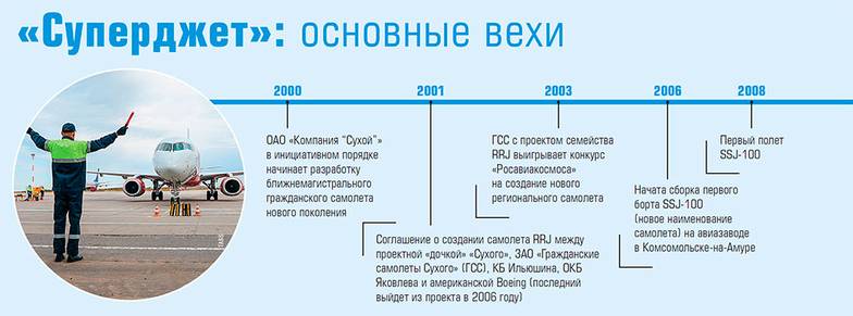 Новый региональный самолет с самого начала создавался в широкой кооперации. В 2001 году было подписано соглашение о создании самолета между проектной дочкой «Сухого», ЗАО «Гражданские самолеты «Сухого» (ГСС), КБ Ильюшина, ОКБ Яковлева и да-да, не удивляйтесь, американской Boeing, которую привлекли в качестве советника и организации маркетинга проекта. Говорят, что первое наименование будущему самолету — Russian Regional Jet (RRJ) — дал тогдашний главный исполнительный директор американского авиастроительного мейджора Фил Кондит.